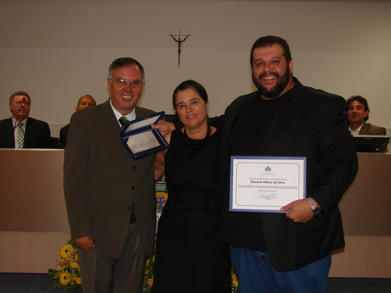 Ver. Valdir Sementile, Rozana M. Silva Faro e o professor homenageado Giiovane Hilário da Silva