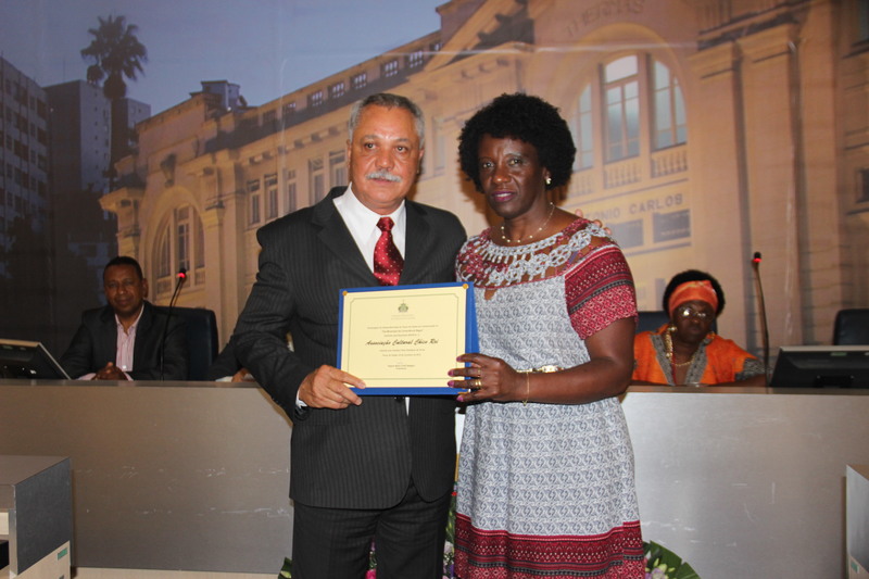 Ver. Paulo Eustáquio de Souza homenageia a Assoc. Cultural Chico Rei, representada pela Sra. Lúcia Vera de Lima