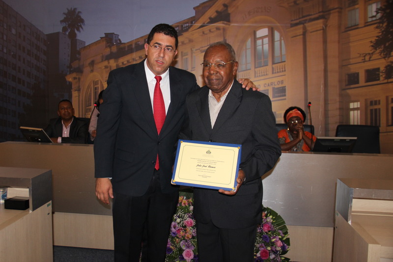 Ver. Flávio Henrique Faria homenageia o Sr. João José Ramos(dir.)