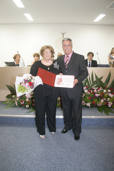 Vereador Luis Antônio de Melo Guerra e a homenegeada Sra Olga Mª de Carvalho Ferraz