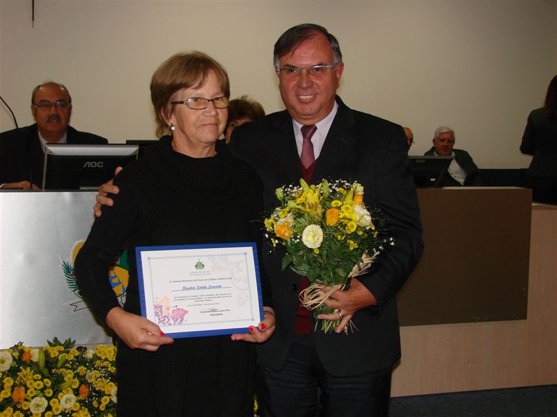 Vereador Valdir Sementile e a homenageada Elisabeth Sementile