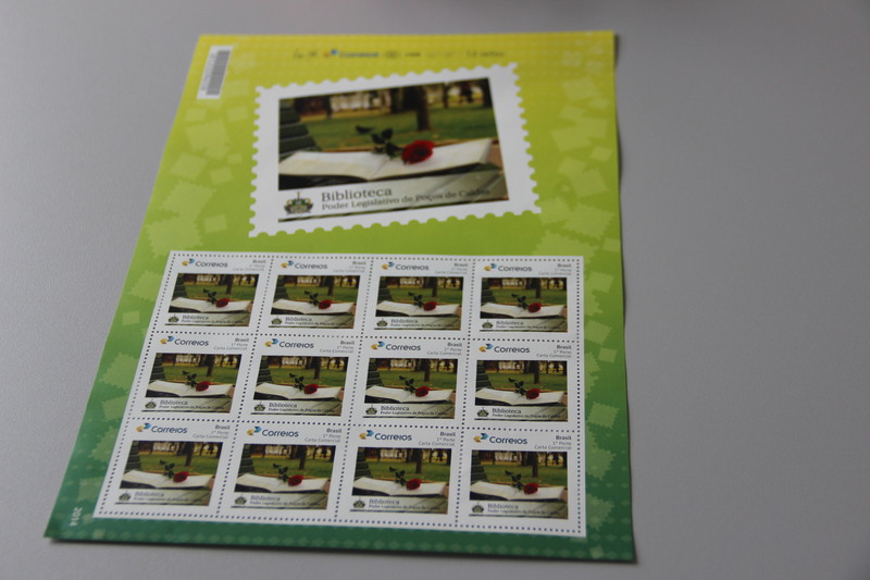 As rosas e o Brasão do Município estampam o Selo Postal, representando a Cidade de P. de Caldas