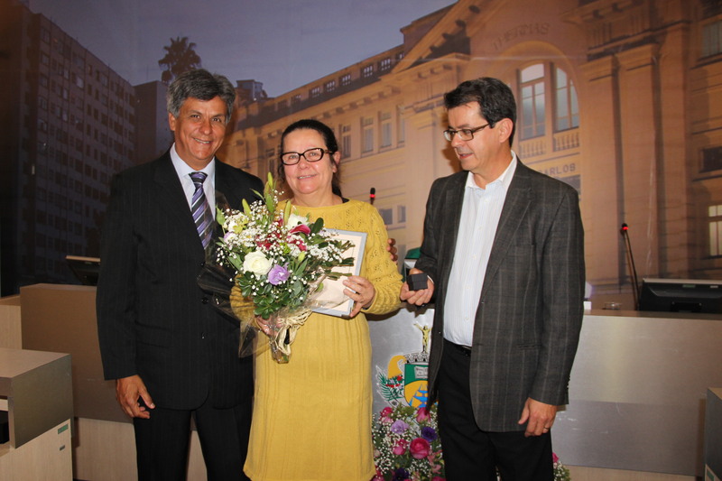 Ver. Joaquim Alves, Sra Izabel Adrian Barros, funcionária homenageada e Sr.João Deom Pereira