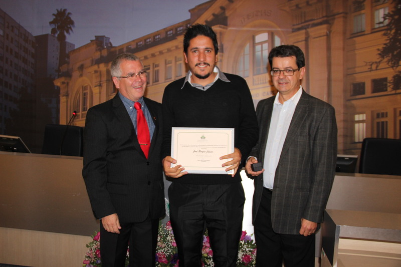 Ver. Rogério Carrilo, Sr. Joel Borges Junior, funcionário homenageado e Sr. João Deom Pereira