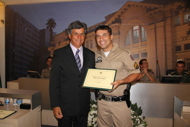 Ver. Joaquim S. Alves entrega diploma ao 3º Sgto Michel Oliveira Chagas