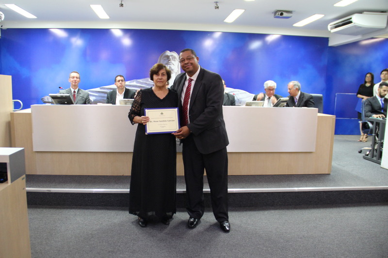 Ver. Wilson Rodrigues entrega uma homenagem à Diaconisa Rosa Cândida Cancian.