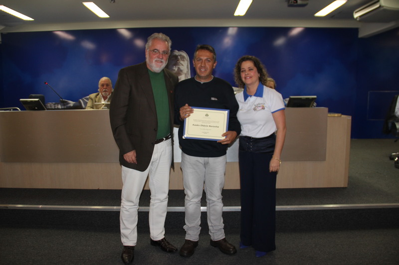 Ver. Paulo Tadeu S.D'Arcádia entrega diploma ao Sr. Kaeks Otávio Noronha