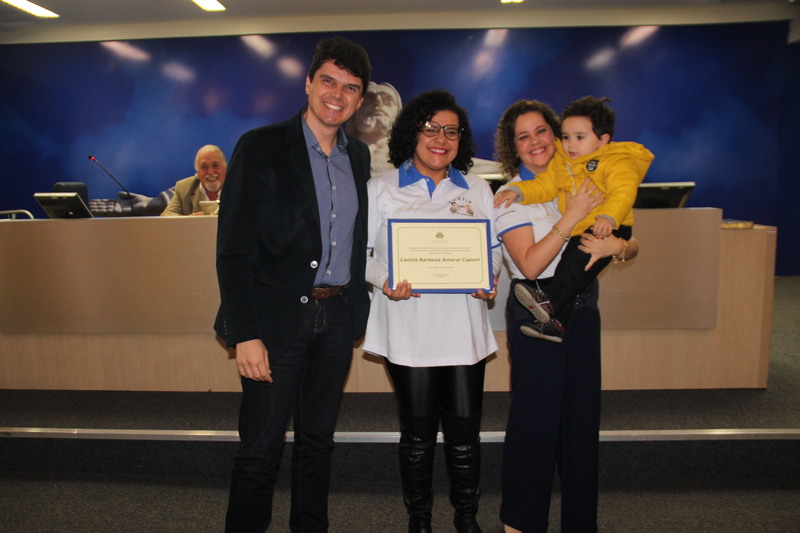 Ver. Ricardo Sabino entrega diploma à Sra. Camila Barbosa Amaral Caponi