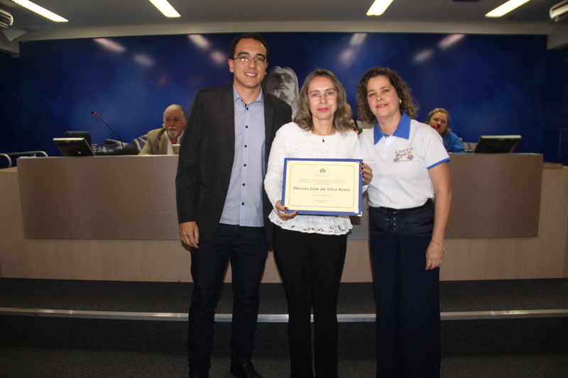 Ver. Lucas Arruda entrega diploma à esposa do Sr. Marcos José da Silva Rossi, ex-pres. da ADEFIP, já falecido.