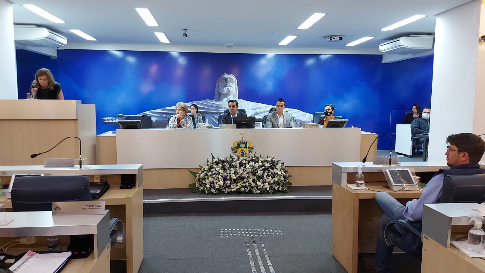 (à esq.) Maria Helena Braga-Sec. Municipal de Educação, Ver. Marcelo Heitor da Silva-Presidente, Ver. Douglas Eduardo de Souza-1º Secretário e Cláudia Esposito-Conselheira do CRP/MG.