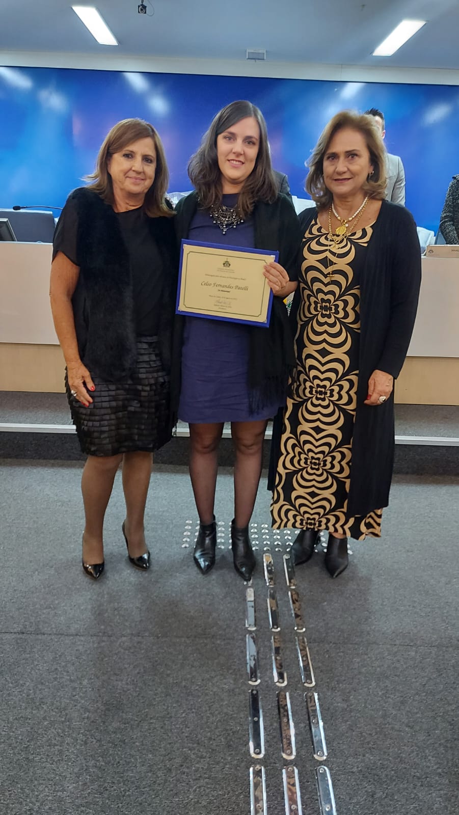 (centro)Camila Martins Damas Patelli,(à dir.) Silvia Cristina Lopes Fernandez, esposa e mãe do psicólogo Celso Patelli(in memoriam).
