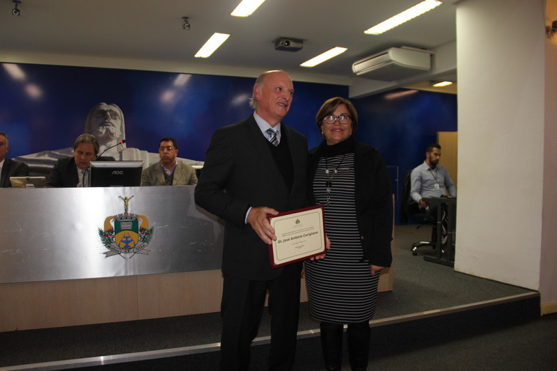 Dr. José Antônio Corigliano, diretor de integração da UNIMED recebe diploma entregue pela Ver. Ligia Podestá