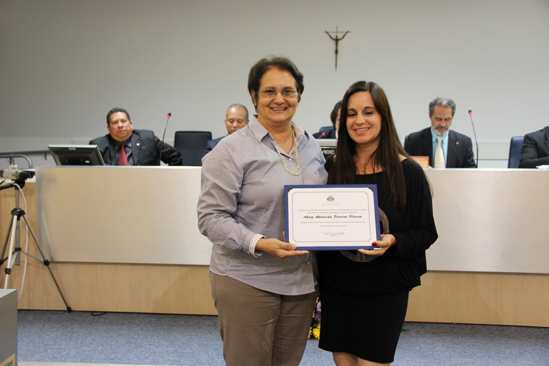 Ver. Mª José Scassiotti entrega diploma à Sra. Adaez A.de Oliveira, funcionária dos Correios