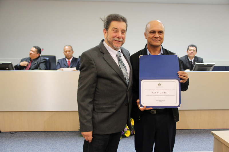Vereador José Maria S. Vieira entrega diploma ao Sr. Paulo Fernando Baena, funcionário dos Correios
