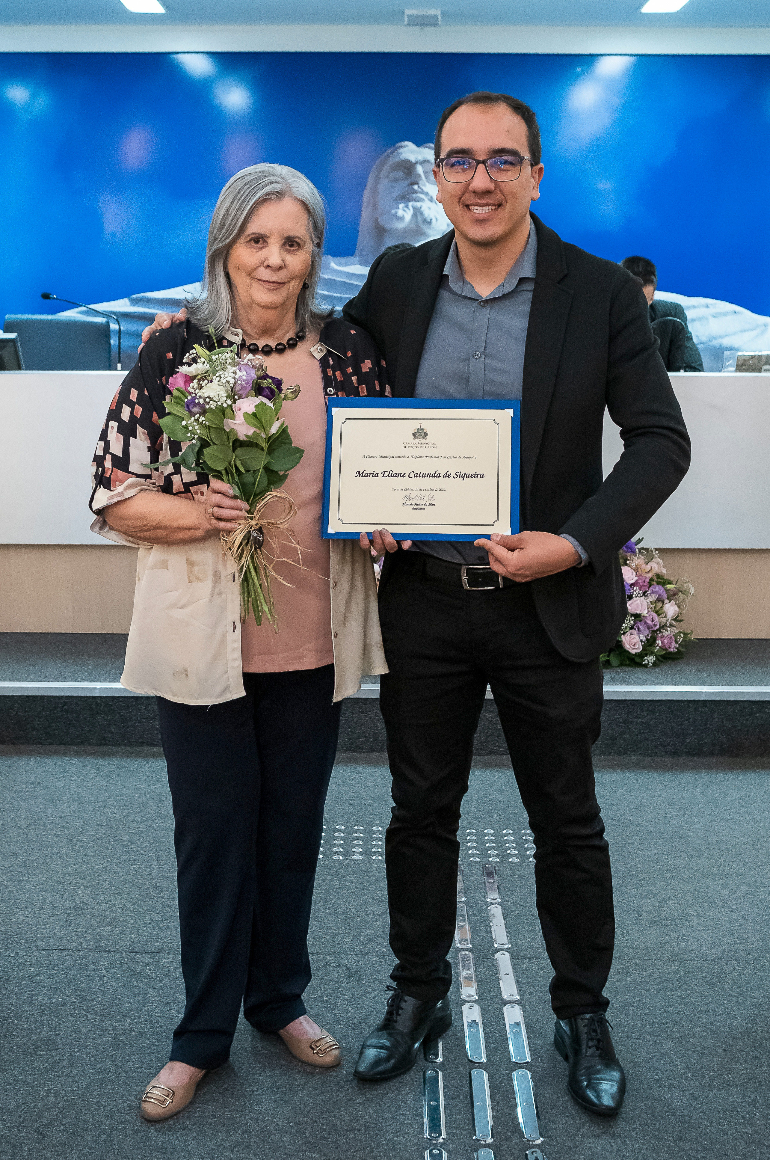 Sra Maria Eliane Catunda de Siqueira, homenageada pelo Ver. Lucas de Carvalho Arruda.