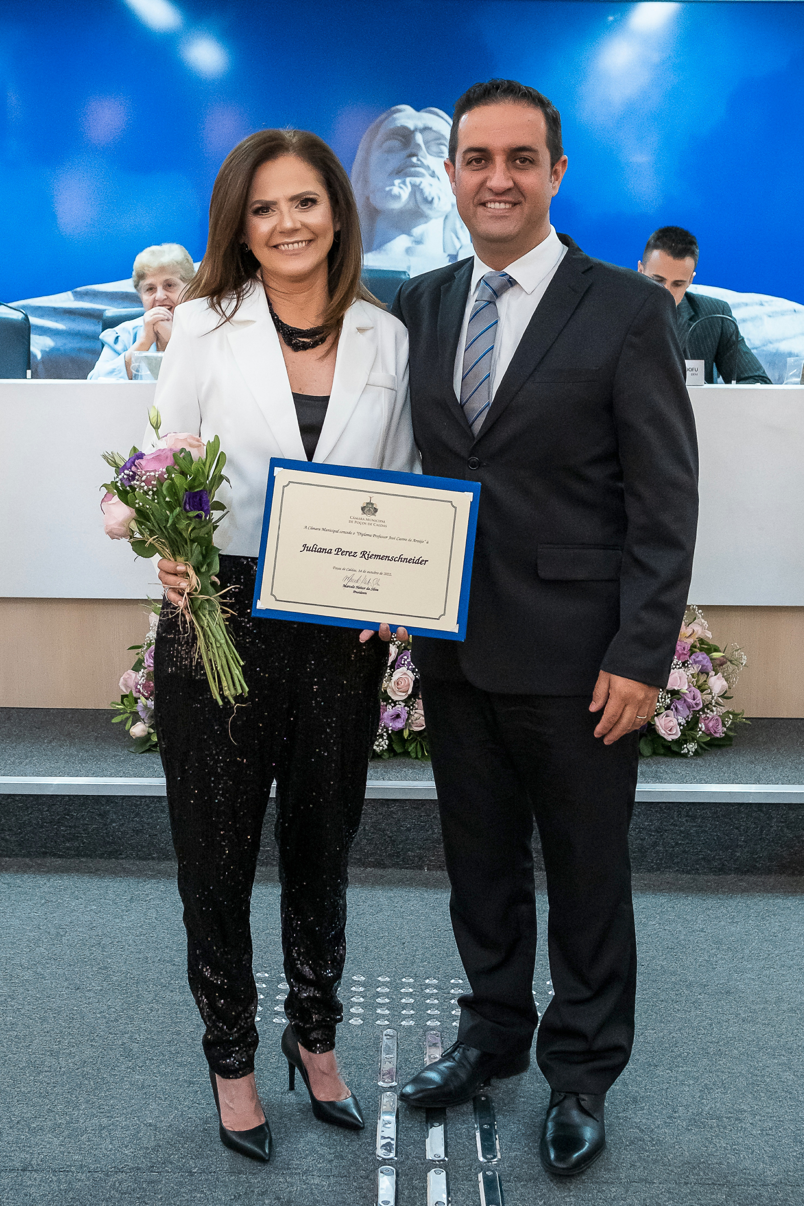 Sra Juliana Perez Riemenschneider, homenageada pelo Ver. Marcelo Heitor da Silva.