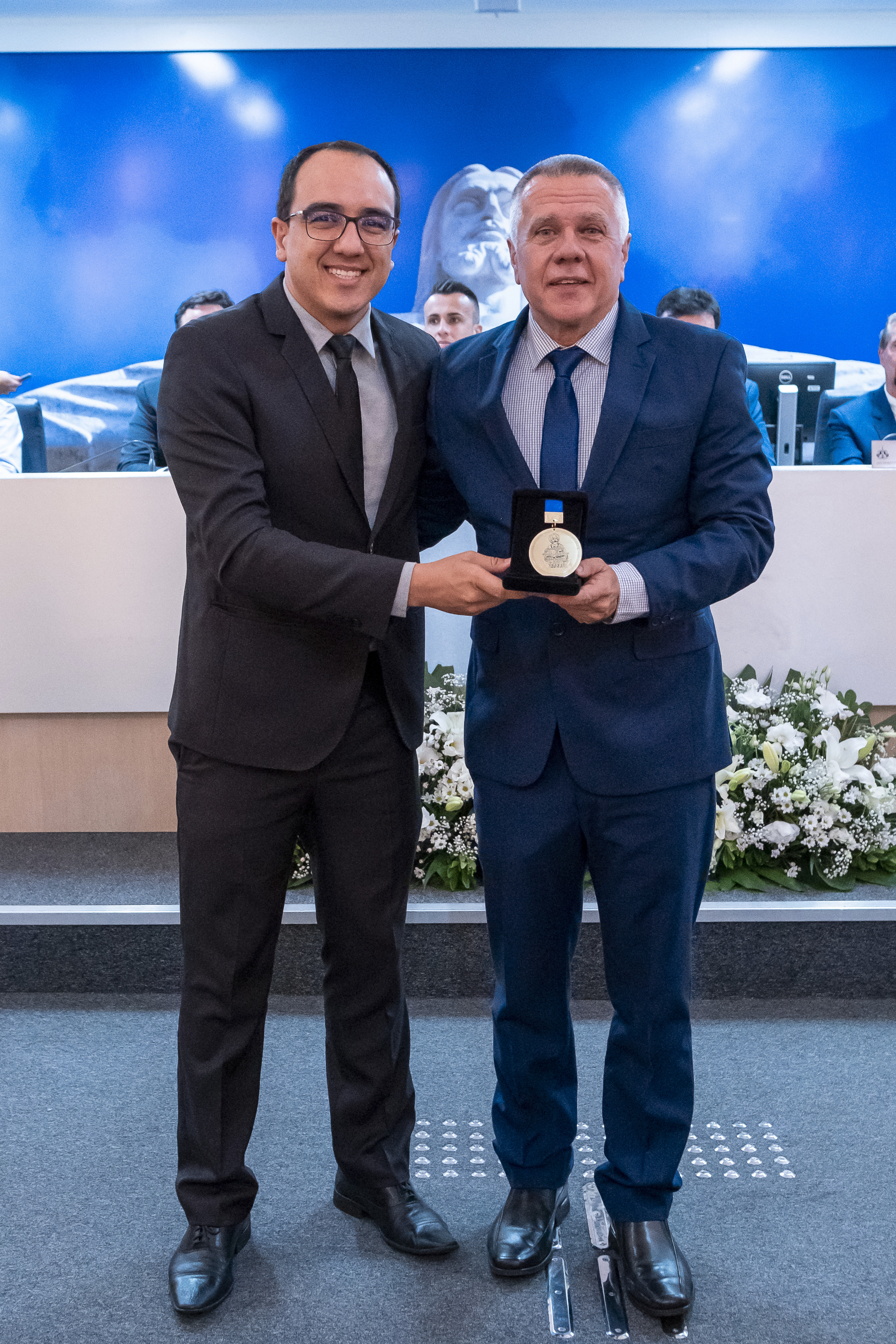 (à dir.) Ver. Lucas Arruda homenageou o Dr. Odilon Trefiglio Neto, médico oftalmologista.