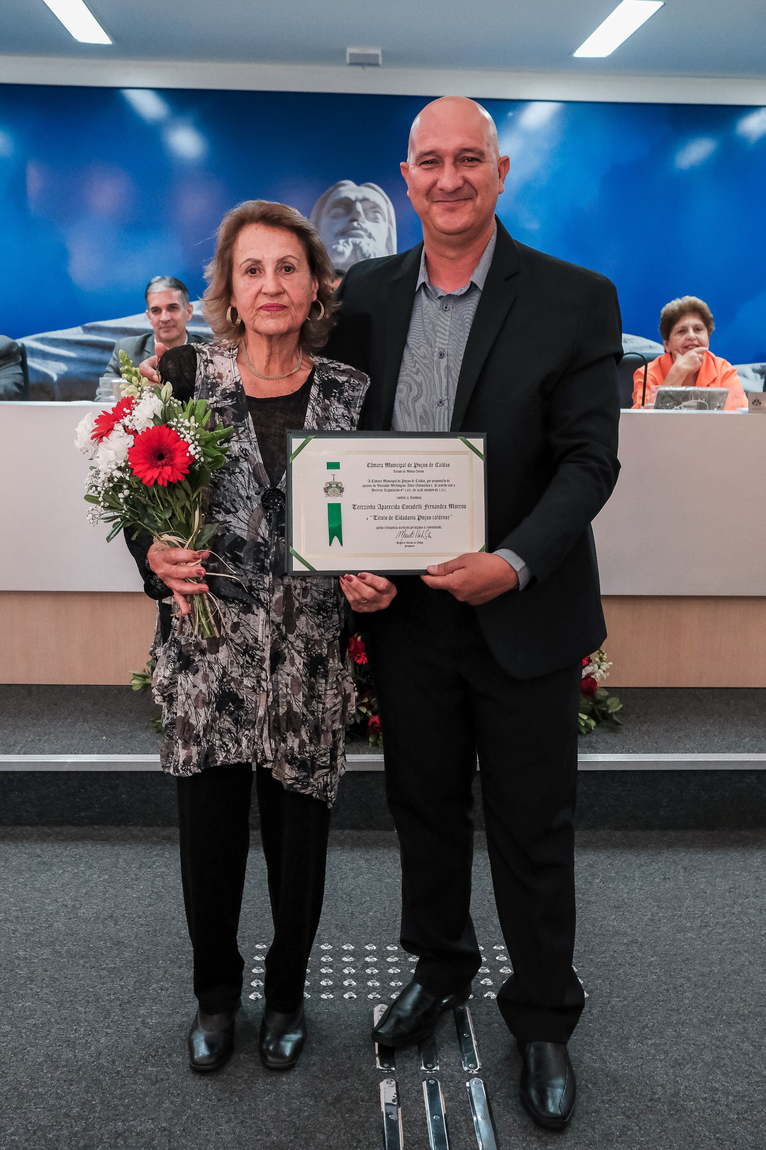 Terezinha Aparecida Coradelli Fernandes Moreno recebeu o Título de Cidadania, entregue pelo Ver. Wellington Alber Guimarães.