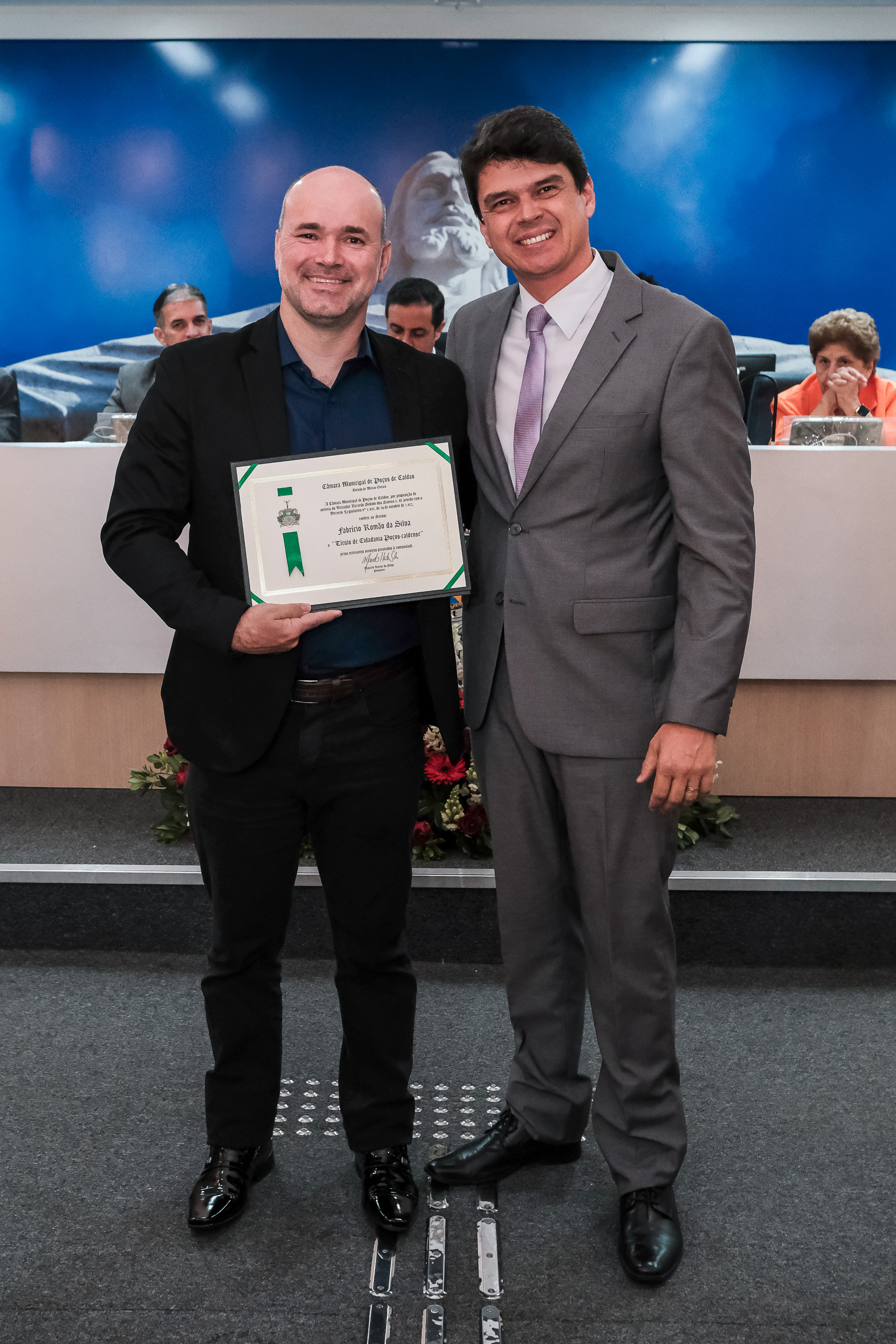 Fabrício Romão da Silva recebeu o Título de Cidadania, entregue pelo Ver. Ricardo Sabino dos Santos.