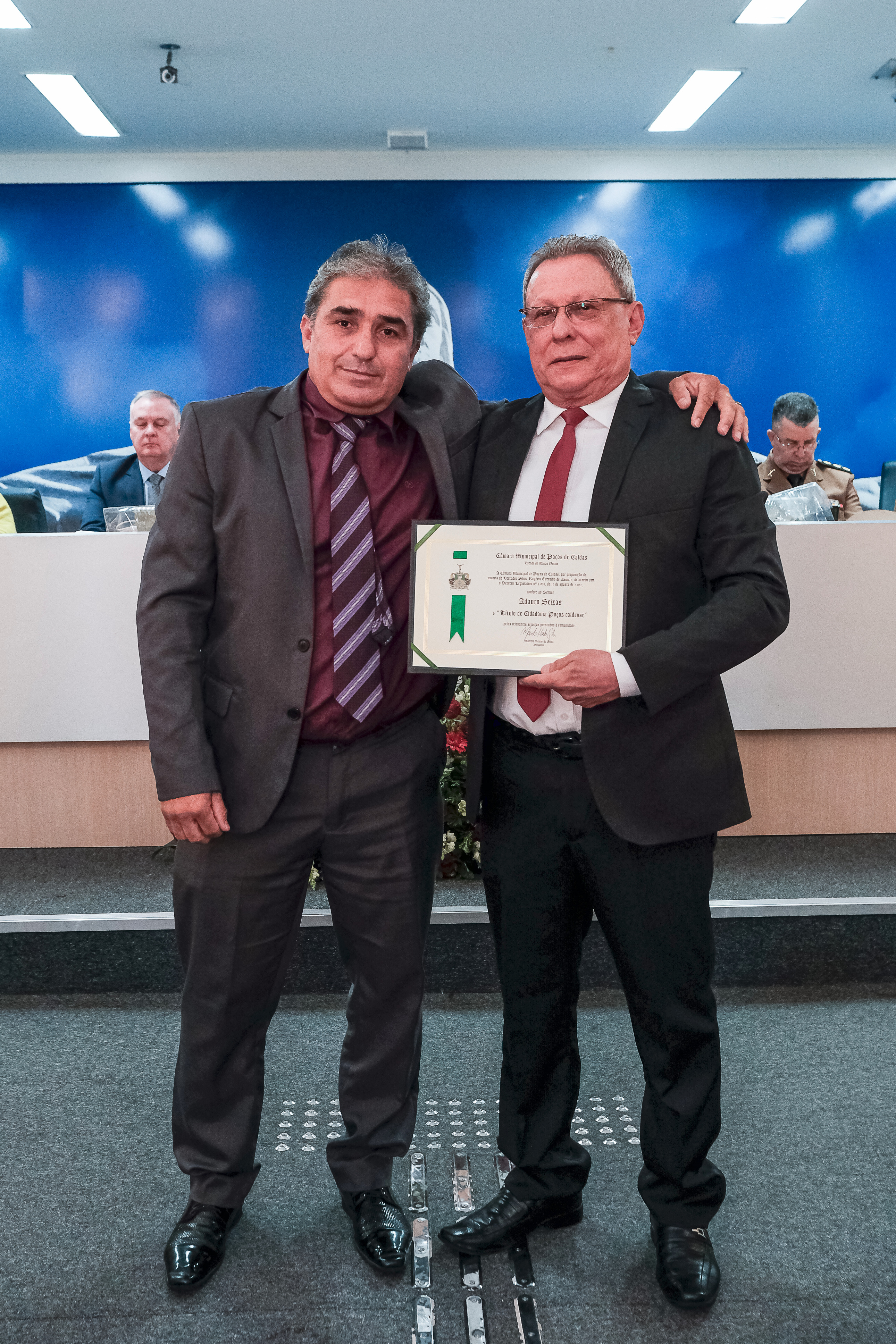 (à dir.)Adauto Seixas recebe o Título de Cidadania, entregue pelo Ver. Sílvio Rogério Carvalho de Assis.