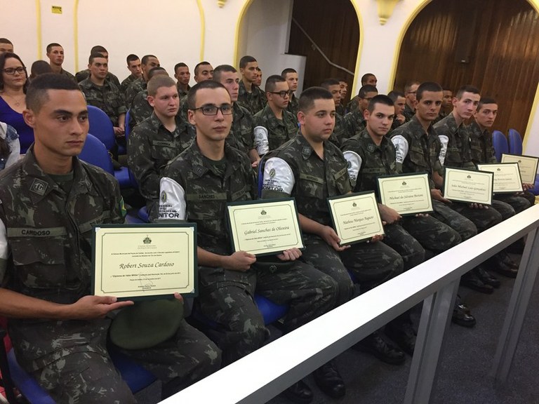 A Câmara Municipal, realizou no dia 21 de novembro, uma Sessão Solene para outorga do Diploma Valor Militar aos atiradores do Tiro de Guerra 04-021, que se destacaram no curso de formação do ano de 2017.