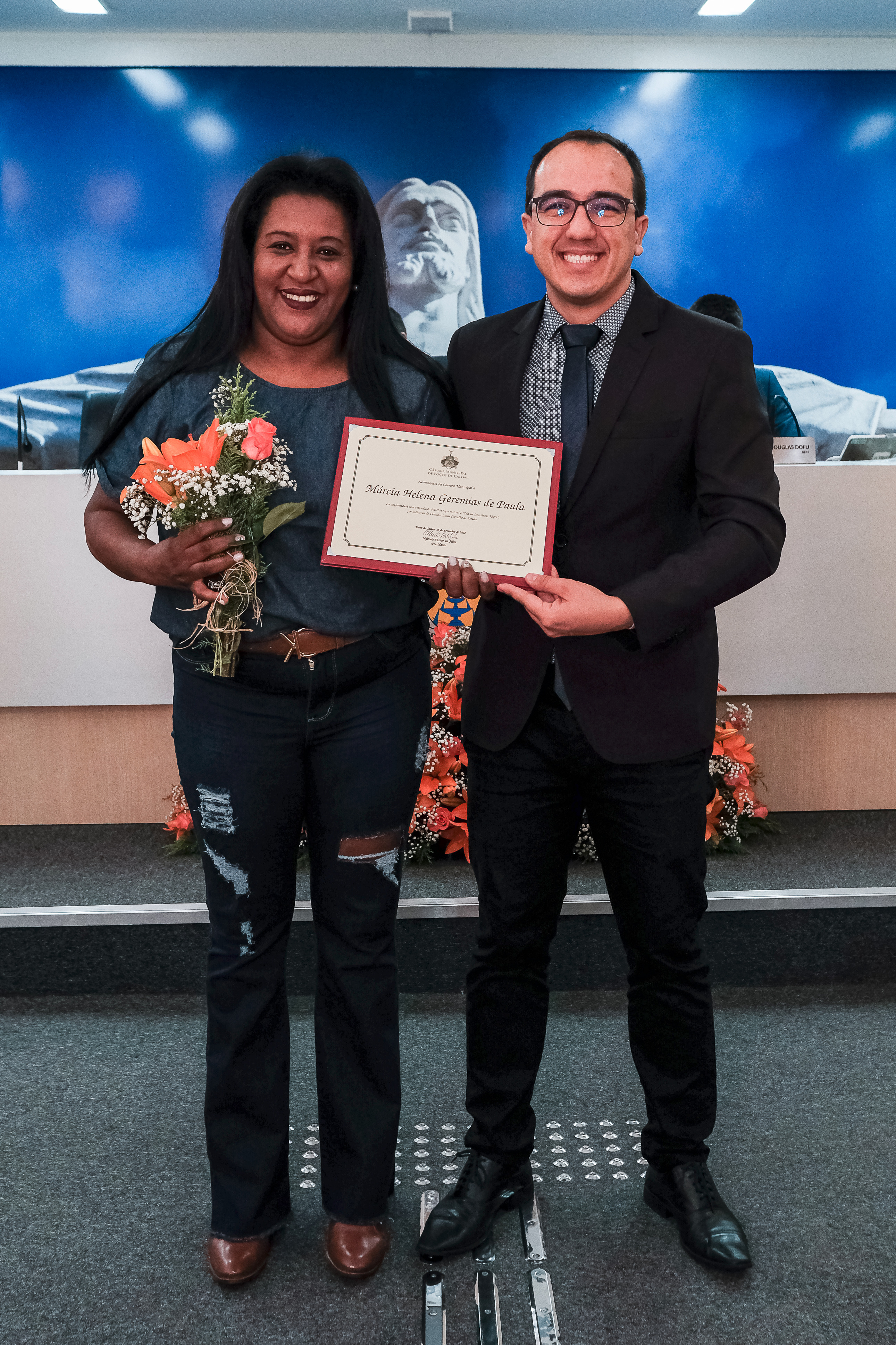 Sra Márcia Helena Geremias de Paula,servidora pública municipal, homenageada pelo Ver. Lucas de Carvalho Arruda.