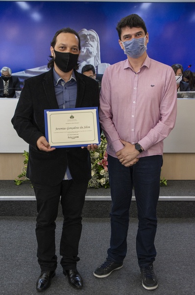 (à esq.) Jeremias Gonçalves da Silva homenageado pelo Ver. Ricardo Sabino