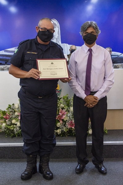 (à esq.)José Henrique Cunha Santos homenageado pelo Ver. Joaquim Sebastião Alves.