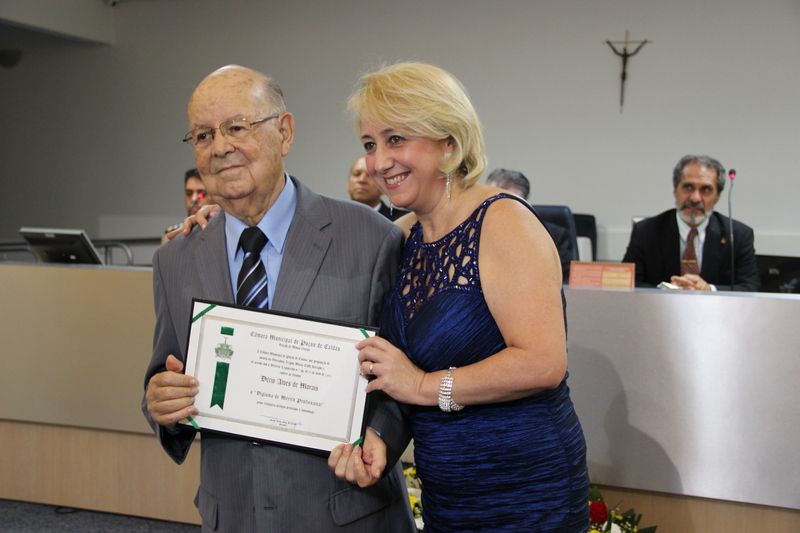 Ver. Regina Cioffi e seu homenageado, Sr. Décio A. de Moraes.