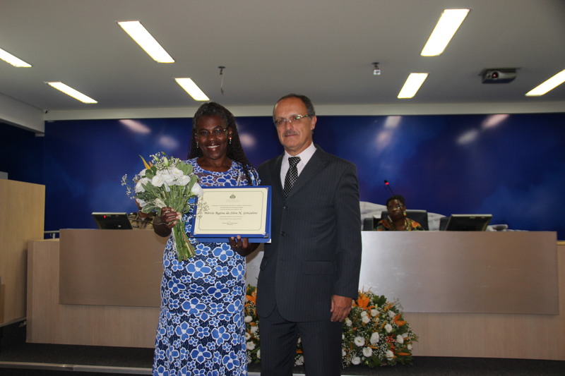 Ver. Jonei Leandro Eiras homenageia a cozinheira Márcia Regina da Silva N. Gonçalves