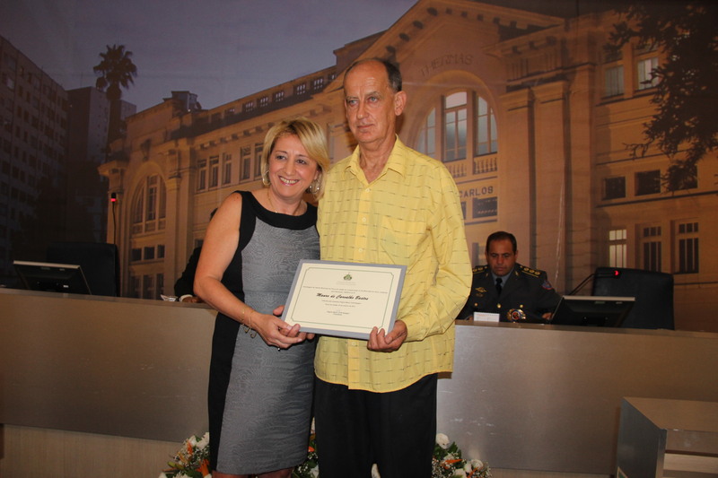 Ver. Regina Cioffi homenageia o Sr. Mauro de Carvalho Bastos