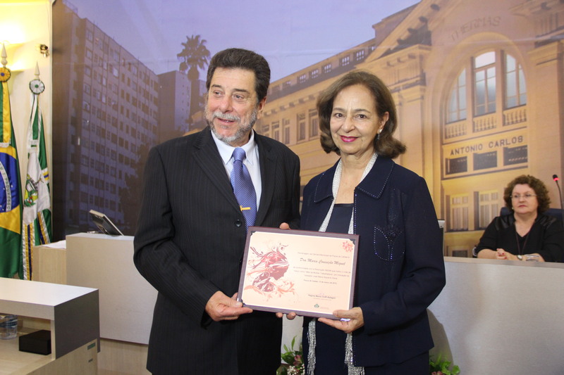 Vereador José Maria Siqueira e a homenageada Dra. Maria Conceição Miguel