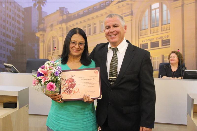 Vereador Rogério Macedo Carrilo e a homenageada Sra. Adélia da Silva Melo