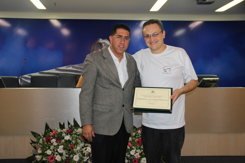 Ver. Flávio H. Faria e o homenageado Christian Pontara Luz