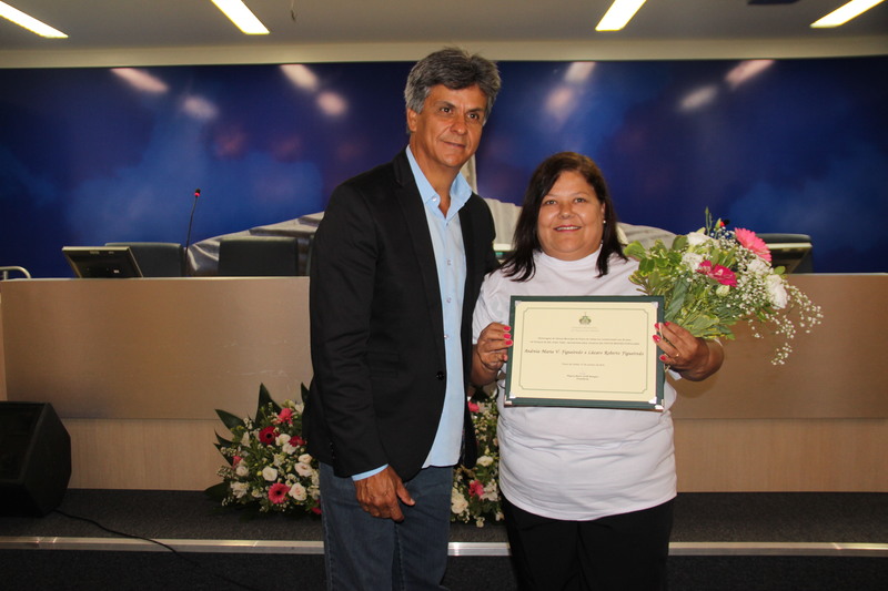 Ver. Joaquim Alves e a homenageada Andreia Maria Viana Figueiredo