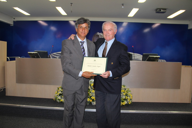 Ver Joaquim Alves(à esq.) e Sr. Aníbal Camilo Togni, ex-presidente da ACIA