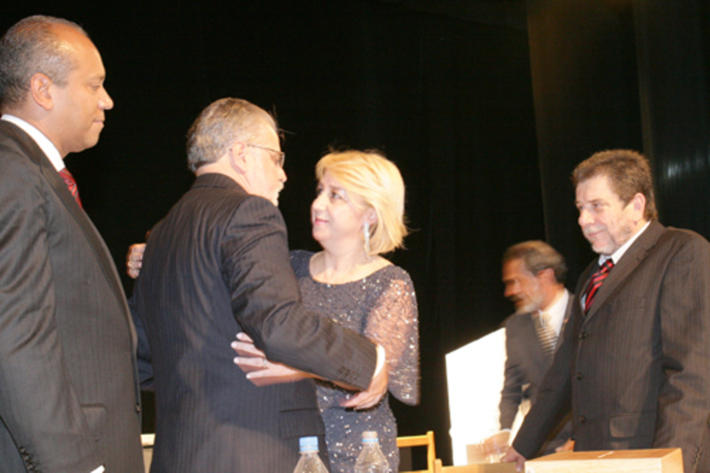 Ver. Paulo Tadeu recebe cumprimentos da Ver. Regina Cioffi