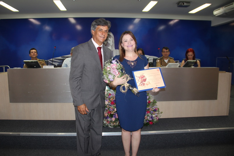 Ver.Joaquim S. Alves homenegeia a Sra Samanta Cristina Bonfá Vieira