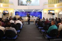 A Câmara de Poços realizou, na última terça-feira (05), a primeira reunião ordinária de 2019. Atendendo ao que dispõe o artigo 90, inciso VII, da Lei Orgânica do Município, o prefeito Sérgio Azevedo participou da abertura dos trabalhos e fez uma apresentação da situação financeira do município. O chefe do Executivo falou, também, das obras executadas nos últimos meses e das ações previstas para 2019 e 2020. A sessão contou, ainda, com a presença de vários secretários e servidores da Prefeitura.